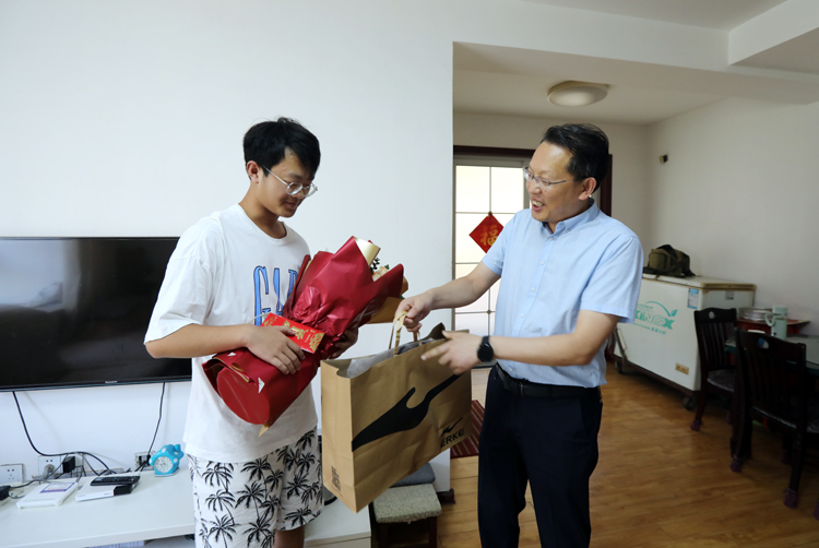 ? ? ? 投資公司黨委副書記、工會主席劉剛一行來到滕士春、侍作青、顏廷周等職工家中,“金榜題名”12名職工子女送去祝福與慰問。每到一處,劉剛親切詢問學生學習情況,并代表公司黨政送上書包、鮮花與“祝學金”。鼓勵學生要把組織的關愛,轉化為勤奮學習、砥礪成才、感恩上進的強大動力,勉勵學子們要勇往直前,奮發圖強,學業有成,實現自身價值,將來以更優異的成績回報父母,回報企業,奉獻社會。